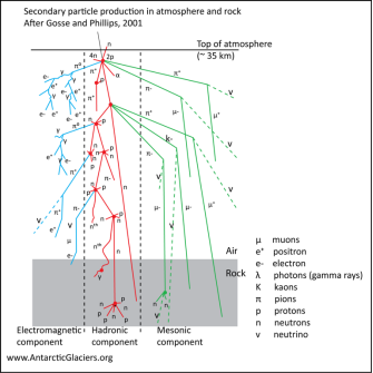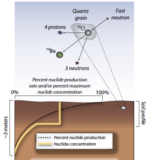l 大气宇生核素:这些次生粒子与大气中氧原子、硅原子等作用生成新的核素:如14C、10Be、26Al等