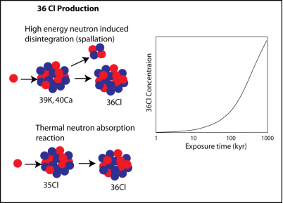 l 生成方式:热中子捕获(36Cl)、快中子散列反应(10Be)、μ-介子捕获(26Al)